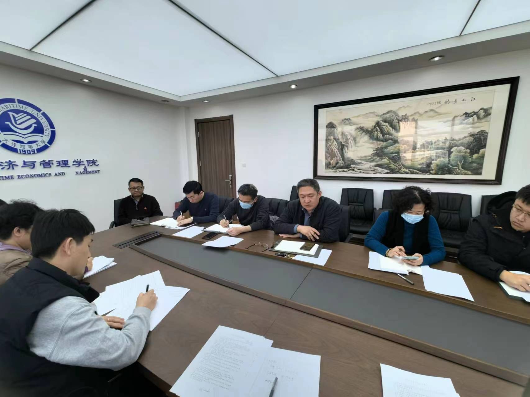 2024年3月14日,航运经济与管理学院党委在管理楼B座413A会议室召开2024年春季学期第一次党支部书记工作例会。学院党委书记张罕育、学院党委副书记王振兴、学院各党支部书记、党务办公室工作人员参加会议。会议由张罕育主持。