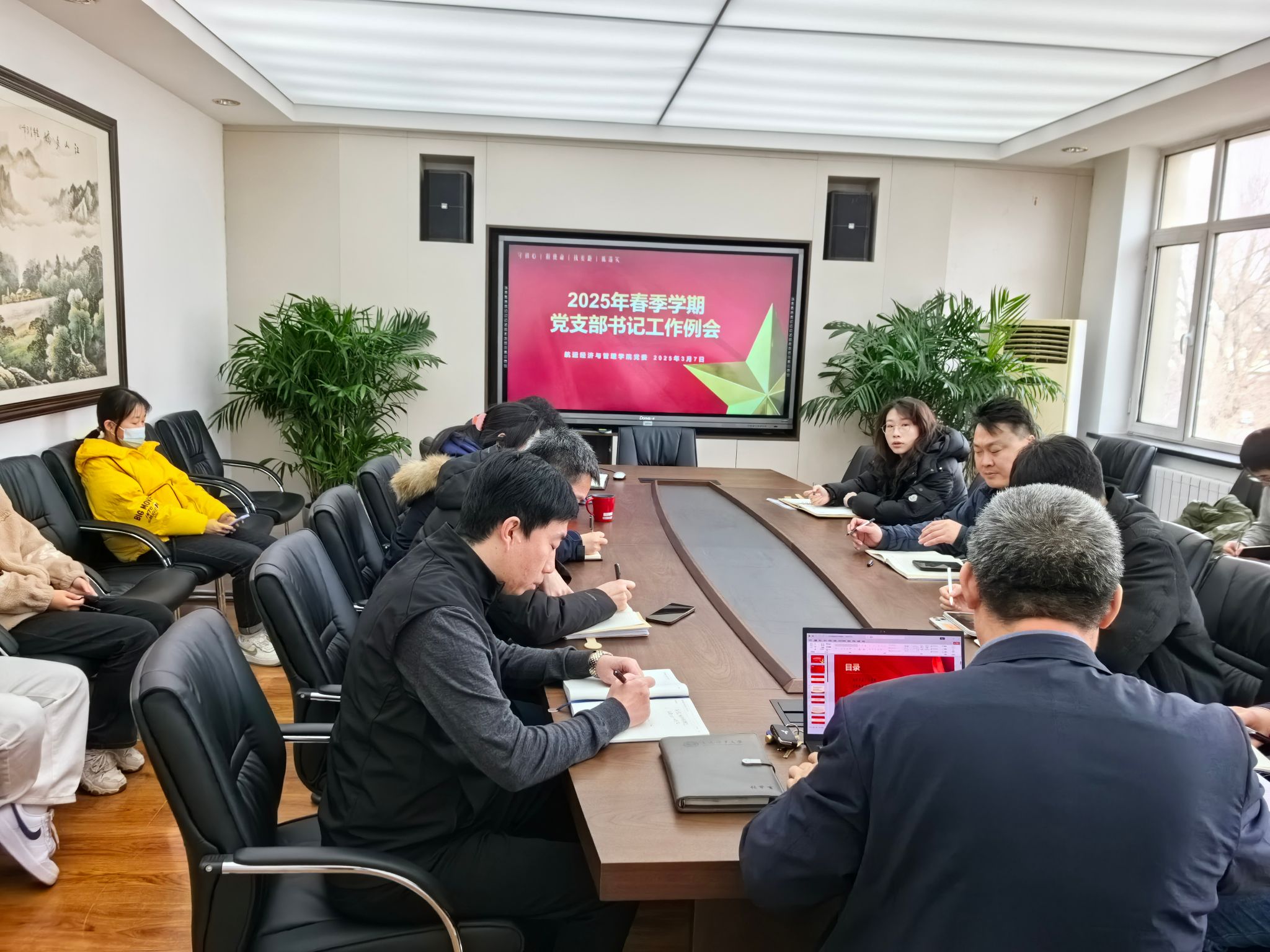 2025年3月7日,大连海事大学航运经济与管理学院在管理楼B座413A会议室召开2025年春季学期党支部书记工作例会,会议由学院党委书记张罕育主持,全体党支部书记参会。