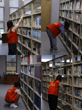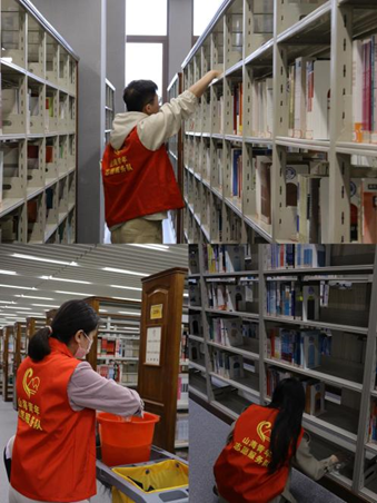 在书架间,志愿者们分工明确,配合默契。细心地清理书架缝隙中的灰尘。经过两个小时的辛勤劳动,图书馆再次焕然一新,整洁的环境和有序的书籍为读者提供了更加舒适和愉悦的阅读体验。志愿者们为构建和谐、文明、美丽的校园文化氛围做出了积极贡献。