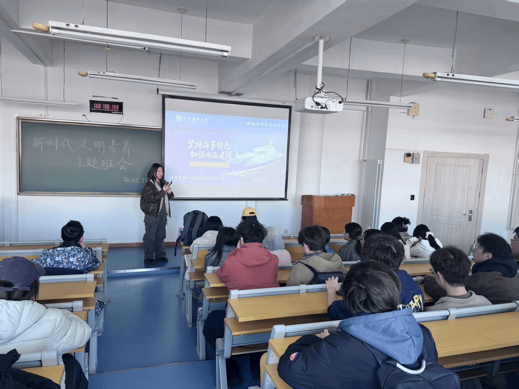为深入推进校园六文明建设,营造积极向上、文明和谐的育人环境,航运经济与管理学院组织开展了以“倡文明新风,筑和谐校园”为主题的校园六文明宣传教育系列活动,通过召开主题中队会、主题班会、学生干部主题研讨会等多种形式,进一步明确校园文明素养的基本内容和行为规范。