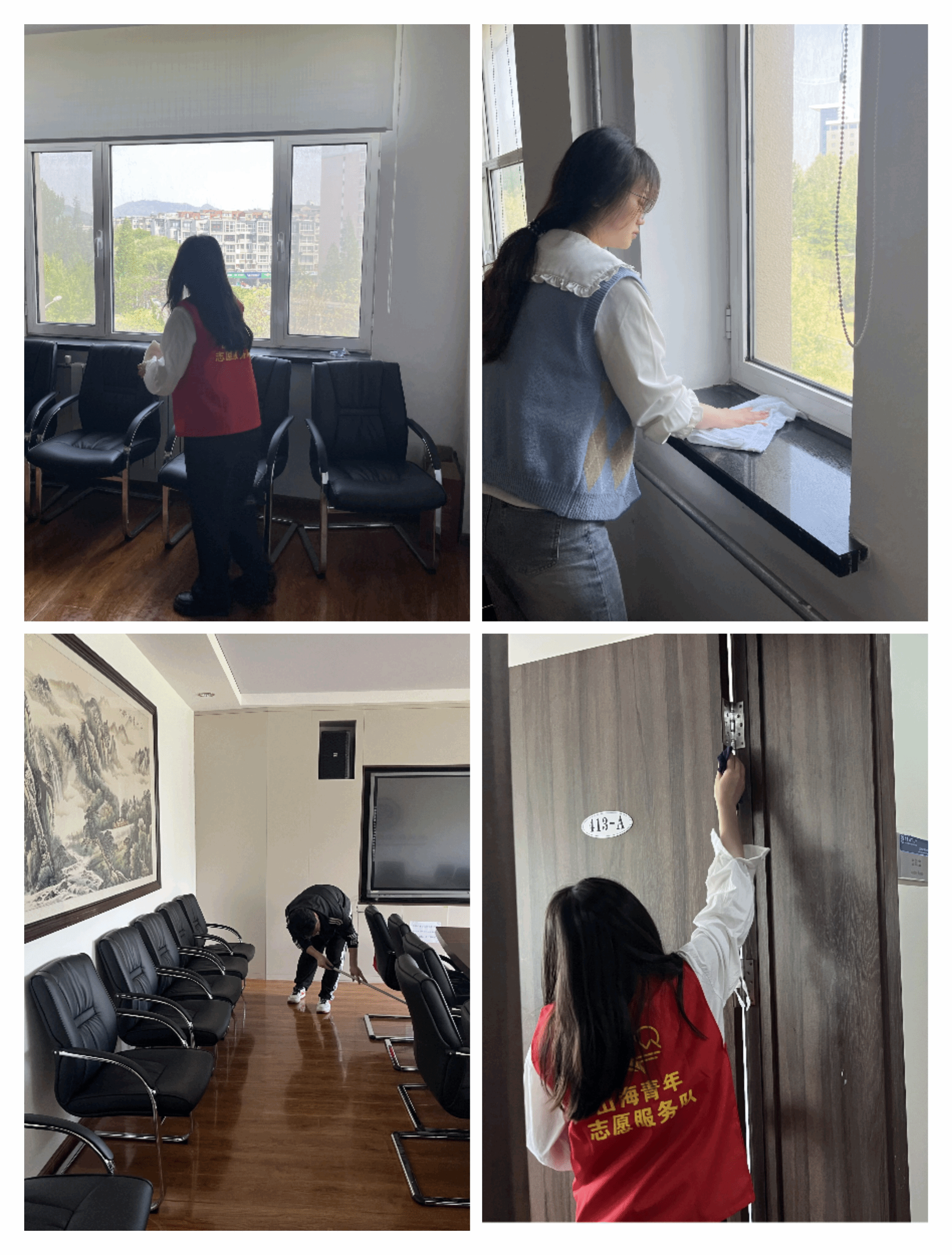 本次参与志愿服务活动的同学们分成三组,分别负责学院会议室、会客室等办公区域的物品整理、卫生清扫任务,以及协助学校档案馆老师完成档案整理工作。