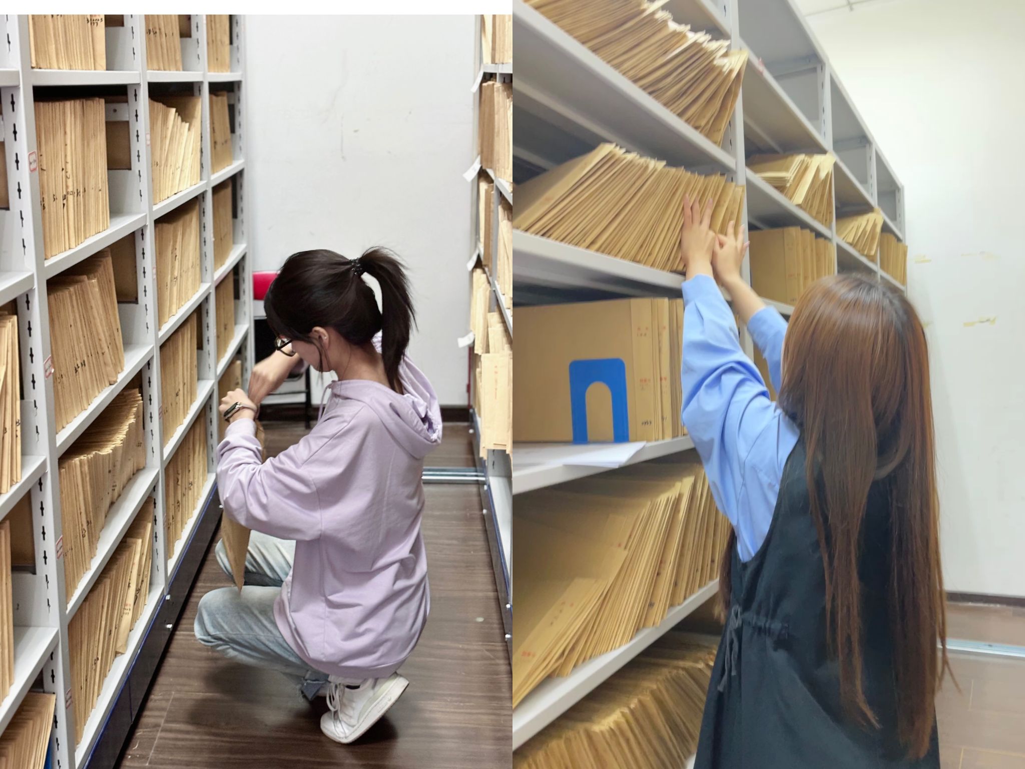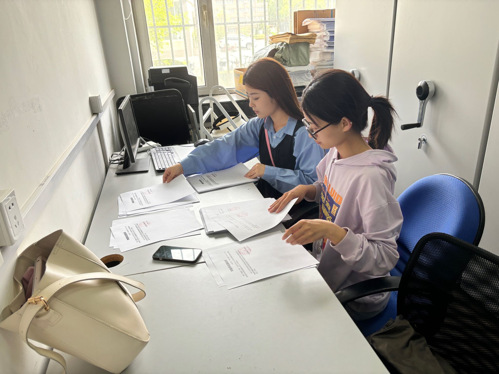 与此同时,在综合楼档案室,两位党员同学正在参与档案整理志愿活动。当前正值毕业季,整理毕业学生的党员档案是学校的一项重点任务。活动中,两位同学分工明确,互相协作,在档案室老师的指导下对档案室内的文件进行了细致的分类、编号和归档。经过数小时的辛勤劳动,档案室内的文件变得井然有序,极大地缓解了档案馆的工作压力,这将为当前高效整理毕业生档案提供有效帮助。