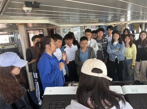 登船前,同学们在船边认真聆听老师的讲解,深入了解了航海技术和原理。通过老师的讲授,大家深刻地感受到了航海工作者的职责和使命,对航海产生更浓厚的兴趣。