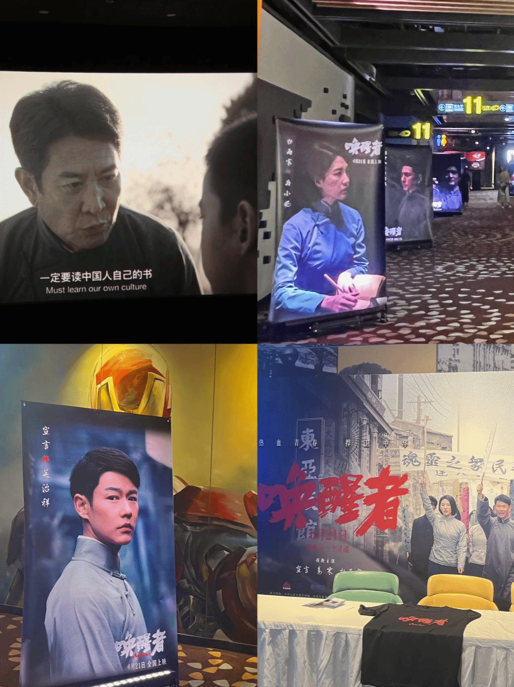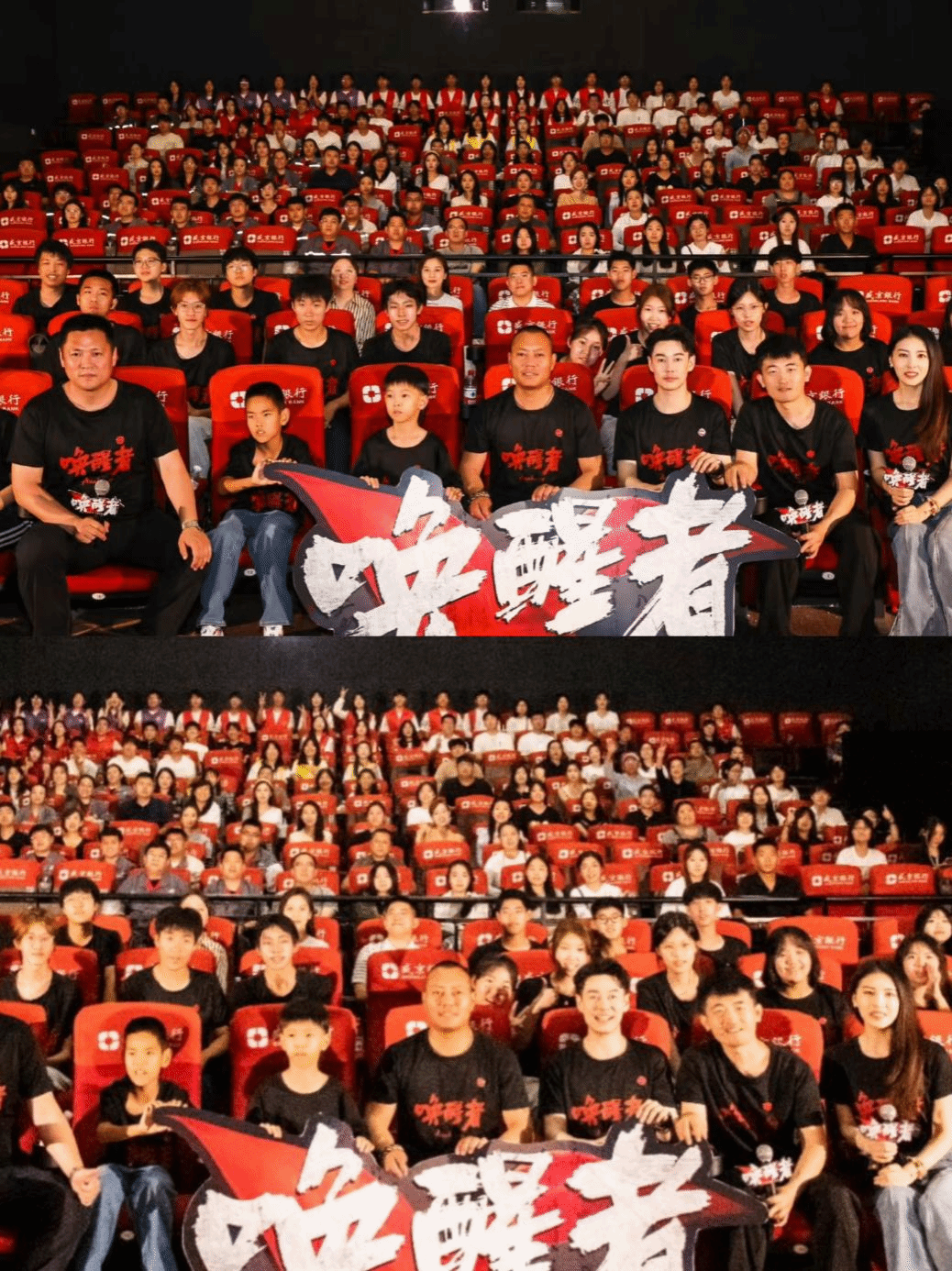 活动当天,同学们怀着激动的心情走进电影院,主办方布置了很多宣传海报。电影开始前,工作人员给同学们分发了纪念徽章,强调了此次观影活动的重要意义。