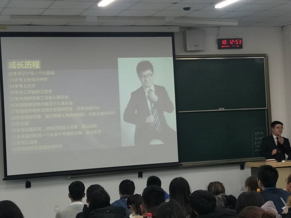 2019年3月21日下午,中国人寿“蓝海·参天计划”校园宣讲会在大连海事大学德济楼103举行。参与本次宣讲会的人有中国人寿·犇腾团队创始人张晓远先生及其团队、航运经济与管理学院2015级指导员陶晨阳。