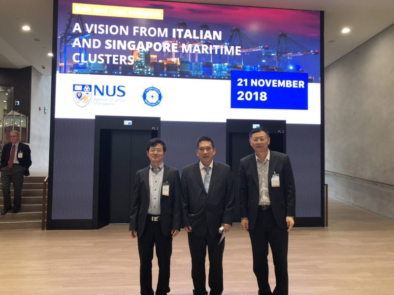 应新加坡国立大学海事研究中心Lim 教授的邀请,2018年11月19-21日,航运经济与管理学院副院长黄庆波教授访问了新加坡国立大学海事研究中心,黄庆波详细介绍了大连海事大学航运经济与管理学院教学、科研和国际合作等方面的情况,介绍了大连海事大学“一带一路”研究院的研究领域和研究成果。双方就研究生联合培养、学术交流与合作等方面交换了意见。黄庆波受邀参加了“Belt & Road Initiative: a vision from Italian and Singapore Maritime Clusters”学术论坛,并作了题为“Study on the cooperation between China and national ports along the 21st century Maritime Silk Road”的演讲。