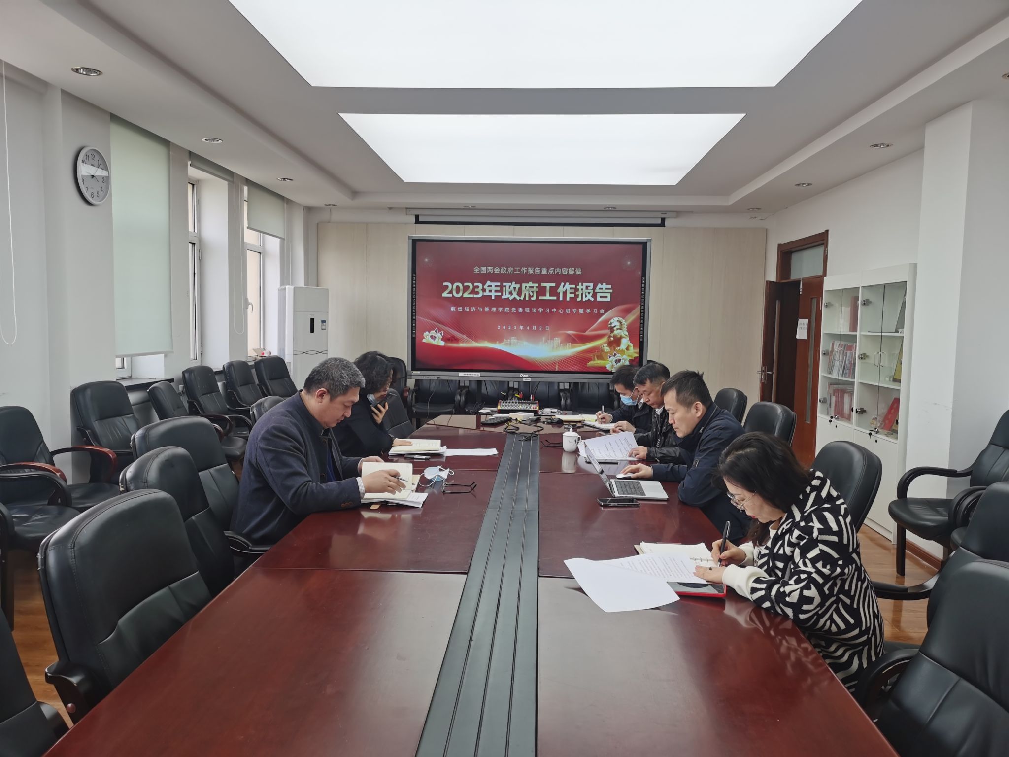 为切实把思想和行动统一到全国两会精神上,形成推动学院高质量发展的强大动力,4月3日上午,航运经济与管理学院党委理论学习中心组在管理楼B座413B会议室召开两会精神专题学习会。学院党委理论学习中心组成员参加学习研讨,会议由学院党委书记张罕育主持。
