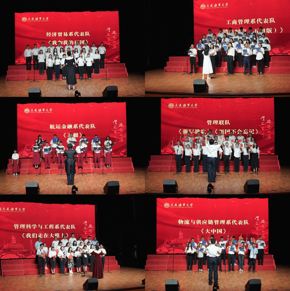 经评审打分,学院管理联队《强军战歌》《祖国不会忘记》荣获一等奖,工商管理系代表队《错位时空(五四版)》和航运金融系代表队《万疆》获二等奖,经济贸易系代表队《我和我的祖国》、管理科学与工程系代表队《我们走在大路上》和物流与供应链管理系代表队《大中国》获三等奖。大连爱乐交响合唱团首席指挥刘雅男进行大赛点评。