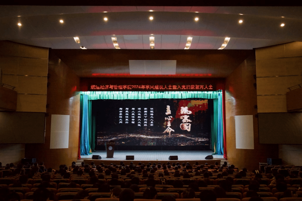 为培育优良学风,努力开创学风建设新局面,11月20日下午,航运经济与管理学院(以下简称“学院”)学风建设大会暨入党启蒙教育大会在东山礼堂举行,学院领导、教师代表、研究生代表、高年级本科生代表和全体2024级本科新生参加大会,会议由学院2024级专职指导员向绍铭主持。