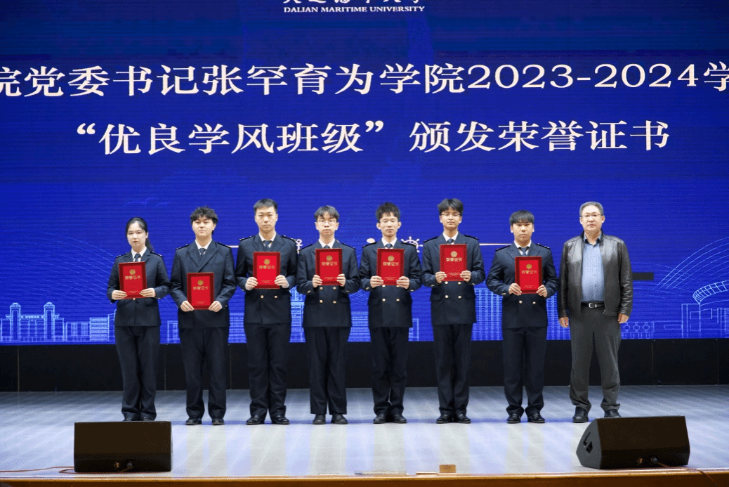 学院党委书记张罕育为学院2023-2024学年“优良学风班级”学生代表颁发荣誉证书。