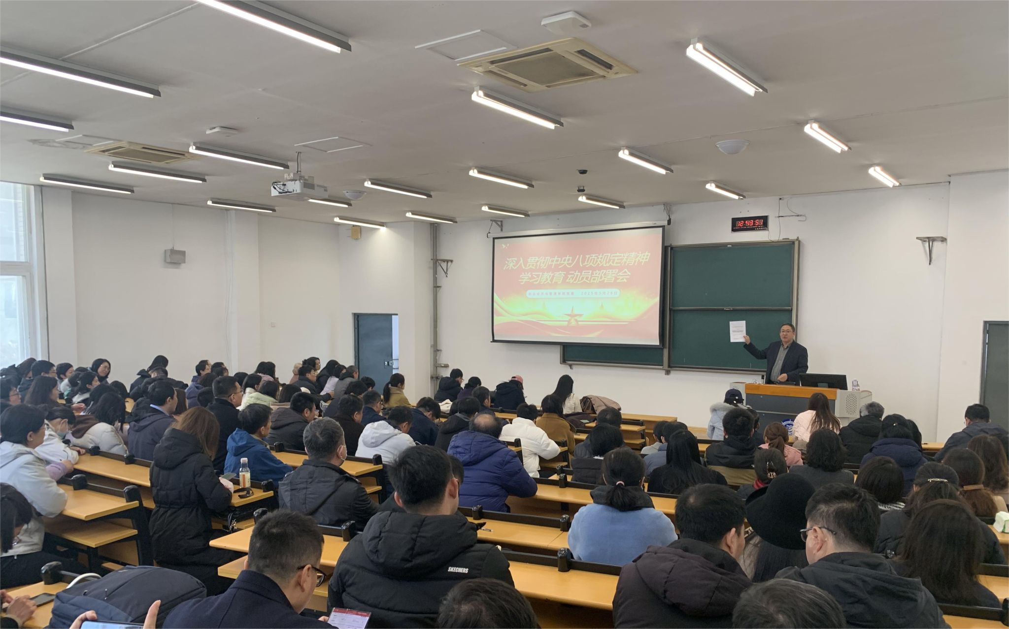 3月28日中午,航运经济与管理学院党委在综合楼侧楼102教室,召开深入贯彻中央八项规定精神学习教育动员部署会。学院全体教职工参加会议,会议由学院党委书记张罕育主持。